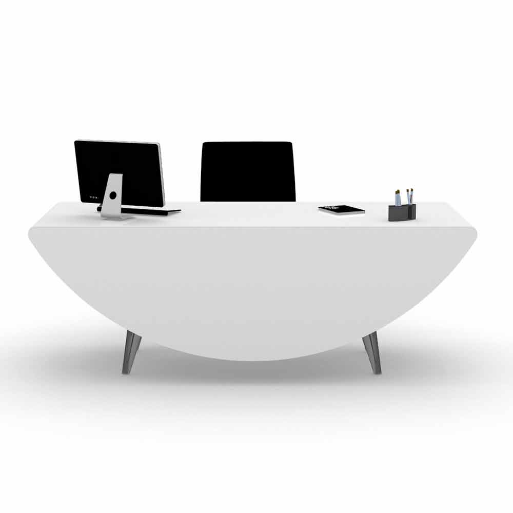 Milis is a fantastic office desk which, with its crescent shape, is very reminiscent of an alarm clock from the 1950s.