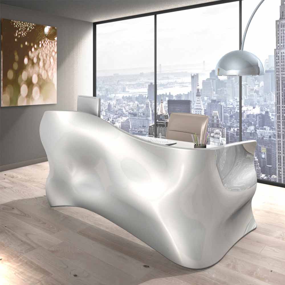 The "Velo" desk was designed to combine functionality and strong aesthetic impact. It is characterized by a design with organic and sinuous queues, almost like a soft veil, which folds and envelops the surrounding space. Its sculptural shape is such that it can be inserted both in modern and minimal environments and in luxurious rooms of the highest level. Desk characterized by Solid Surface, available in three colour variants: White (RAL9003), Black (RAL9005), Dove Grey (RAL1019), choose the one best suited to you!
