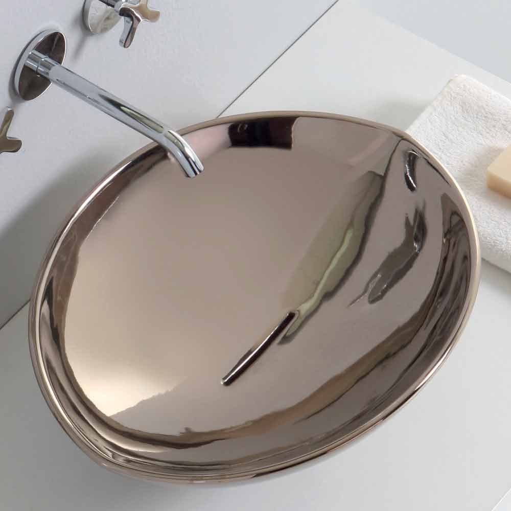 Animals is a fabulous ceramic countertop washbasin in a total platinum finish.