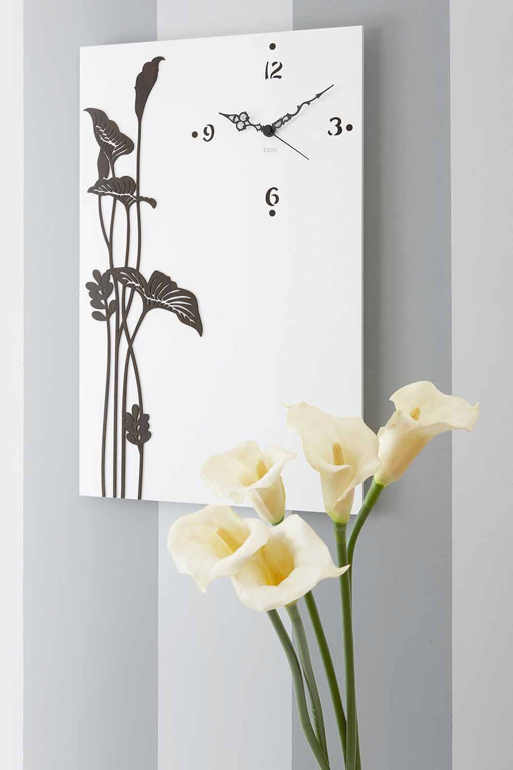 Modern Rectangular Wall Clock in Decorated White Wood - Crocus