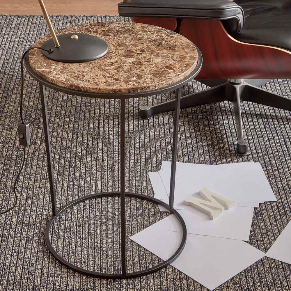 Round lounge table with marble top in 3 finishes and metal base, luxury item made in Italy.
