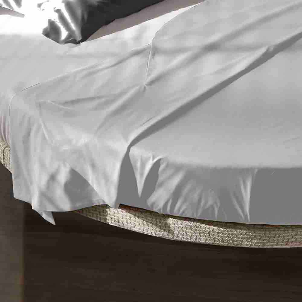 Round double bed covered in fabric with corner headboard, Made in Italy design.