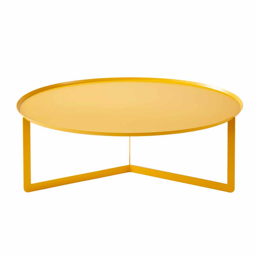 Round modern garden table, made of mud or Mayan yellow metal, luxury made in Italy.