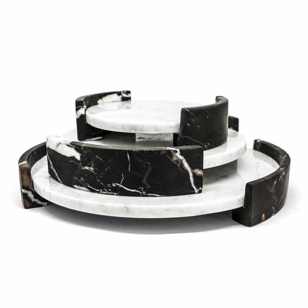 Round design tray made of high quality white Carrara marble Made in Italy.