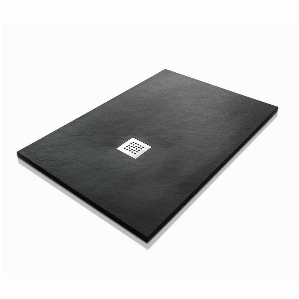 Modern rectangular shower tray 120x80 in resin with stone effect finish.