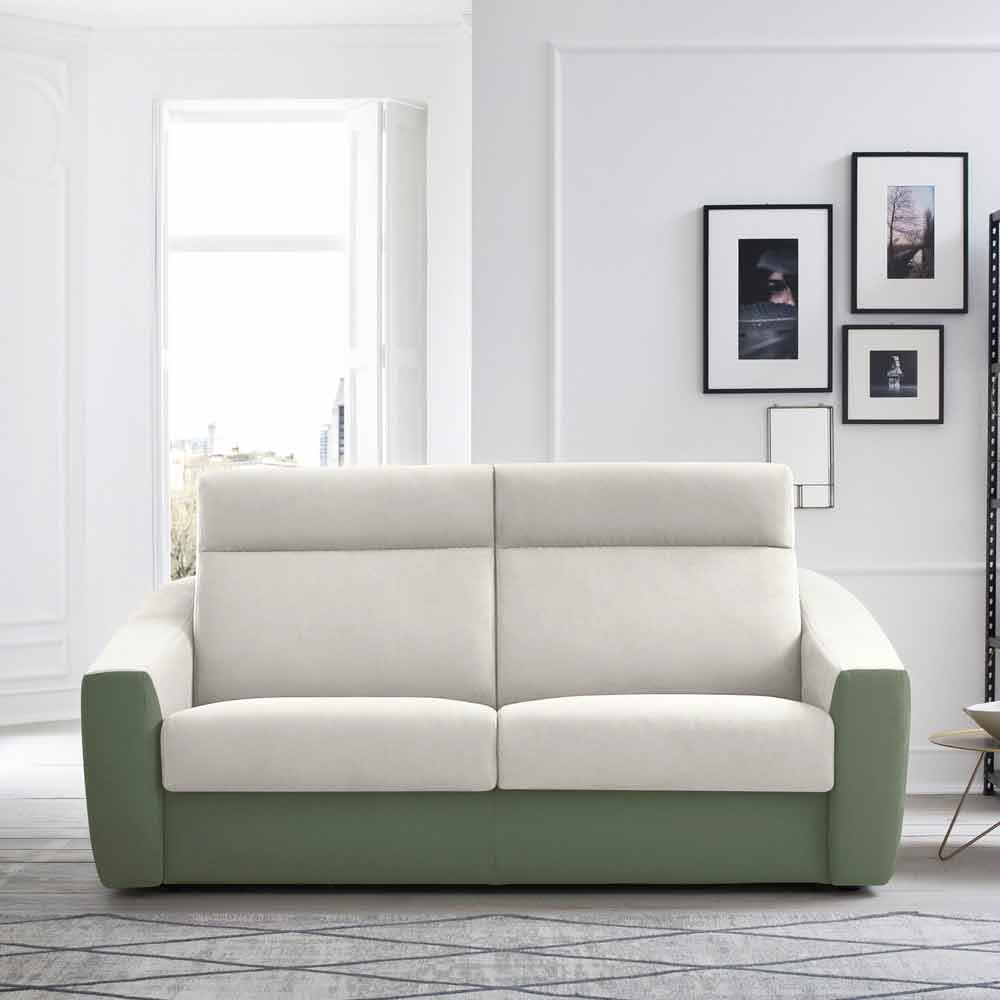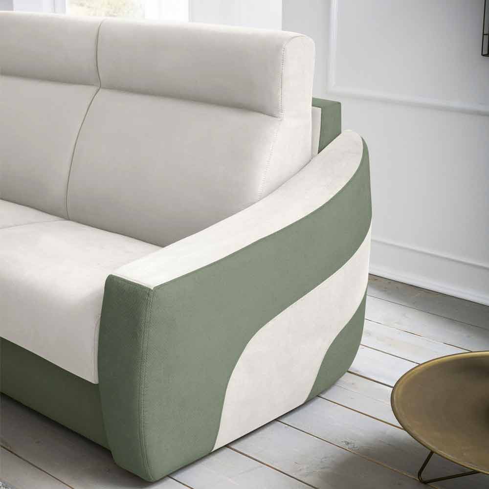 two-tone olive and white fabric (completely removable). Soft shapes and original queues offer unparalleled comfort and an extremely welcoming seat for a complement with