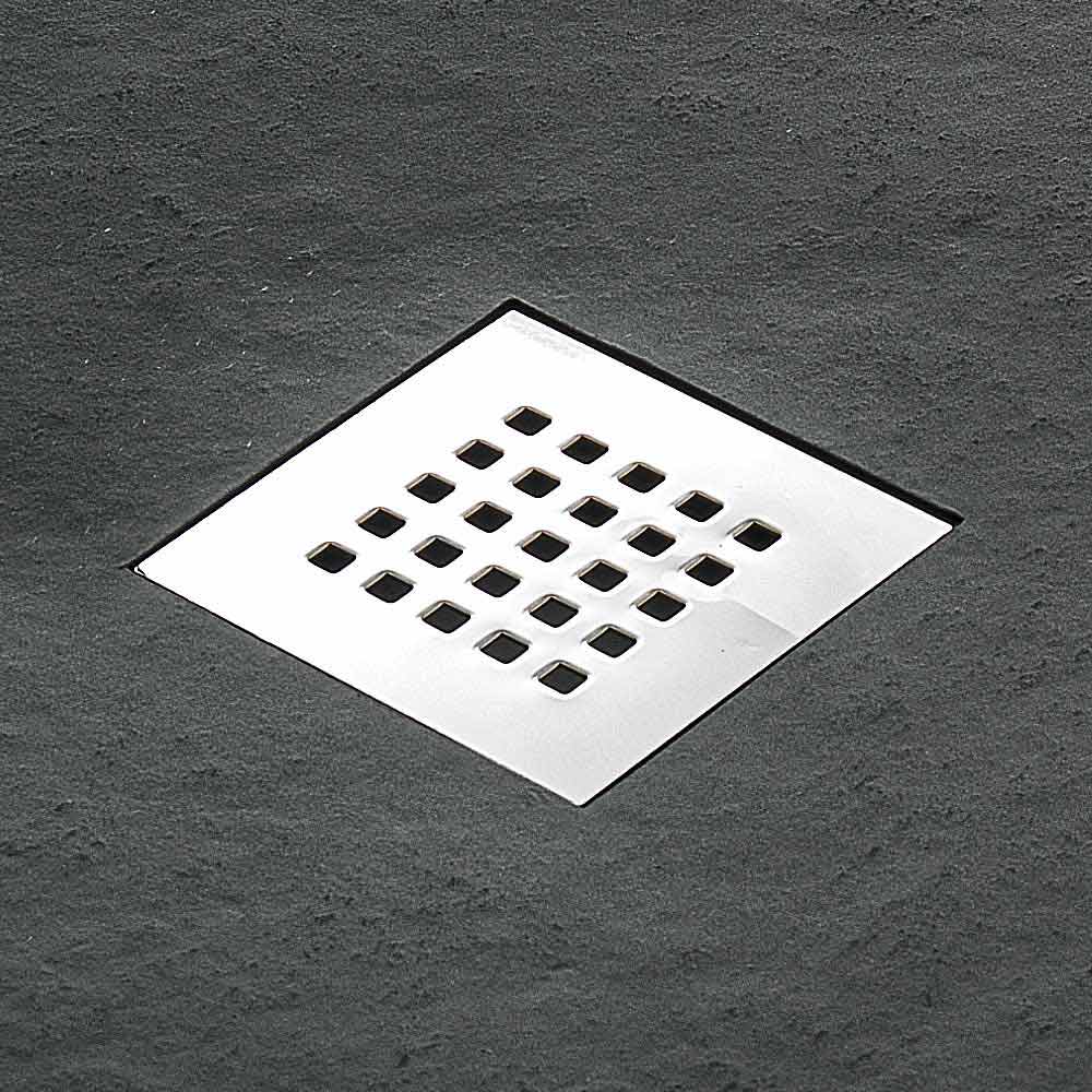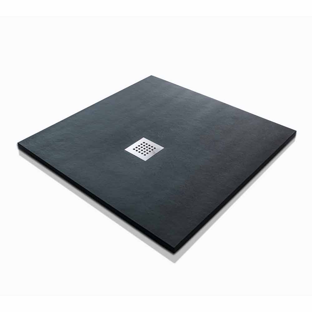 Square shower tray 90x90 in stone effect finish with steel grid.