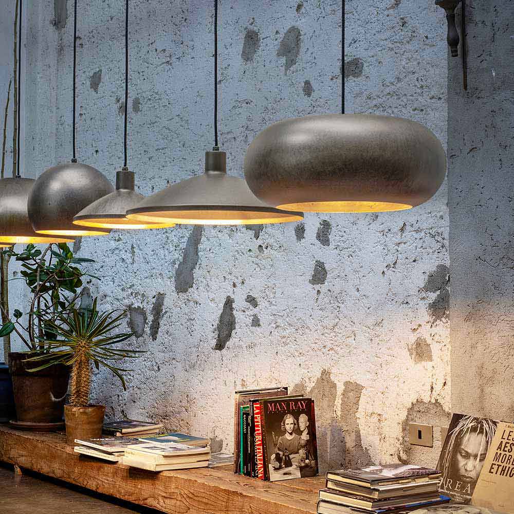 Suspension lamp in antiqued steel made in Italy, Materia by Aldo Bernardi.