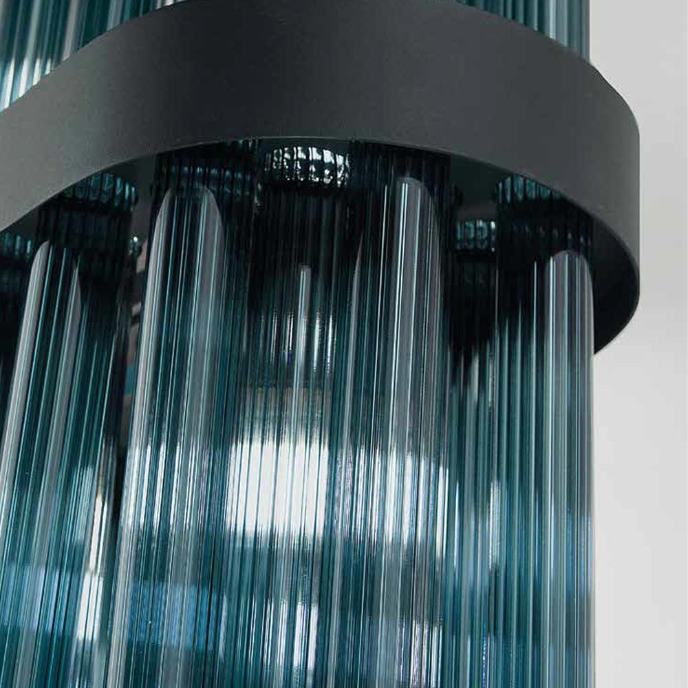 The suspended lamp with a modern and refined design is a luxury lighting accessory entirely handmade in Italy in blown striped glass and metal structure produced and painted by hand.