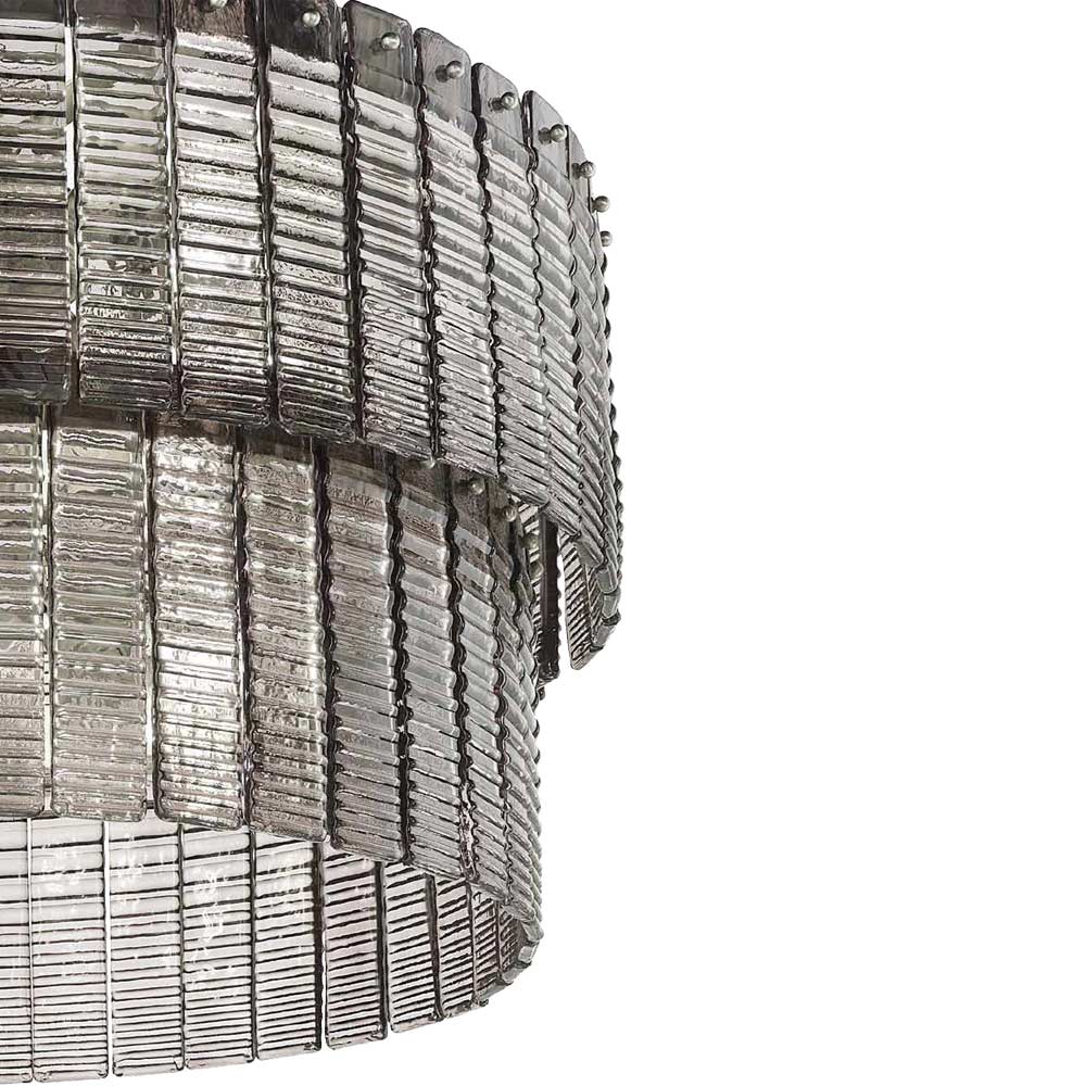 Suspended lamp 14 lights in handcrafted glass with geometric decoration, Italian luxury.