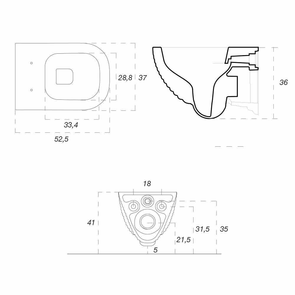 The Trabia collection combines functionality and design: this toilet vase offers functionality and practical, thanks to the merits of the material of which it is composed without neglecting the decorative aspect, studied in detail. The vitreous china is a kid of glazed ceramic cooked at 1200°. It is resistant to heat, acid, bumps and scratches and it is also hygenic and easy to clean. The coloring does not fade over time.