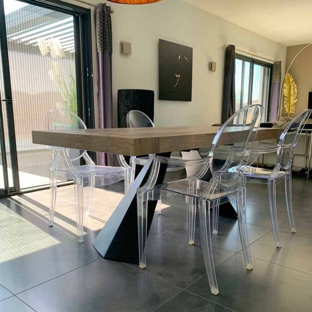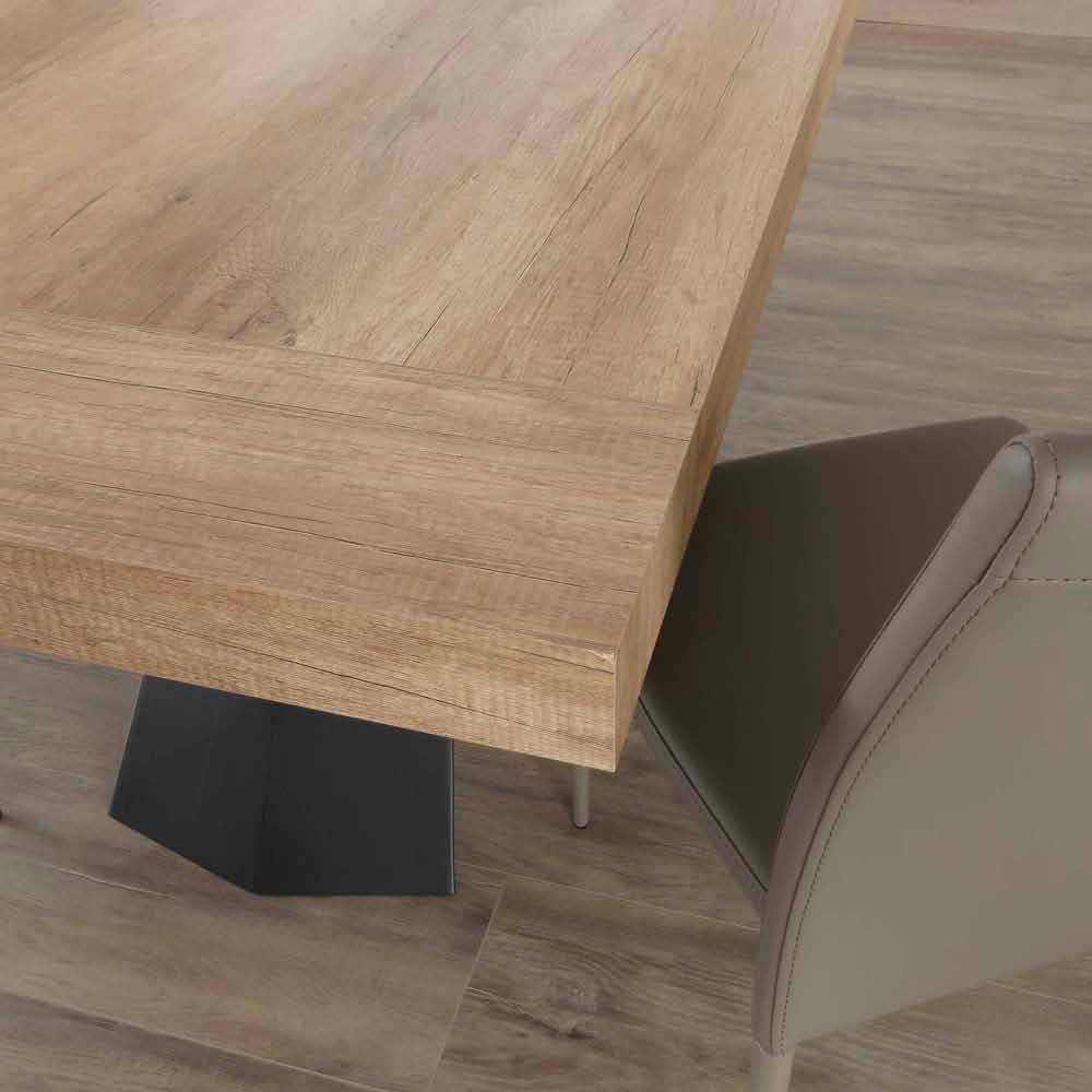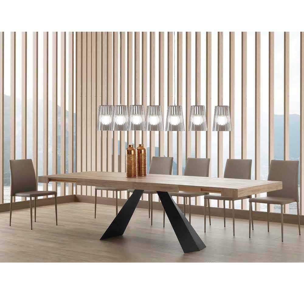 Teramo is an extendable table with simple but impactful queues able to give character to your environment. Furnishing accessory made according to manufacturing processes aimed at absolute control over the quality of the result to guarantee style and innovation to your furniture. Furnishing element that fits perfectly into your spaces, giving a sophisticated touch to your rooms. The extensions are included in the table structure.