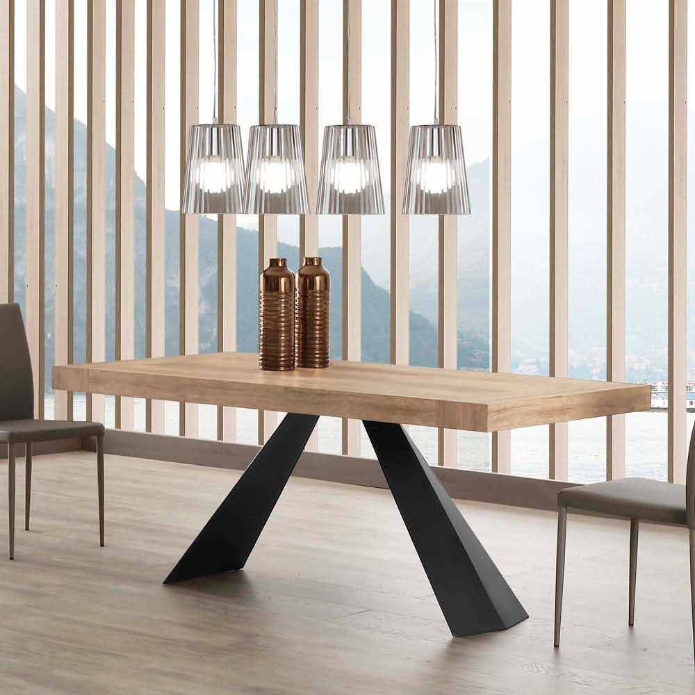 Extendable dining table in wood and metal.