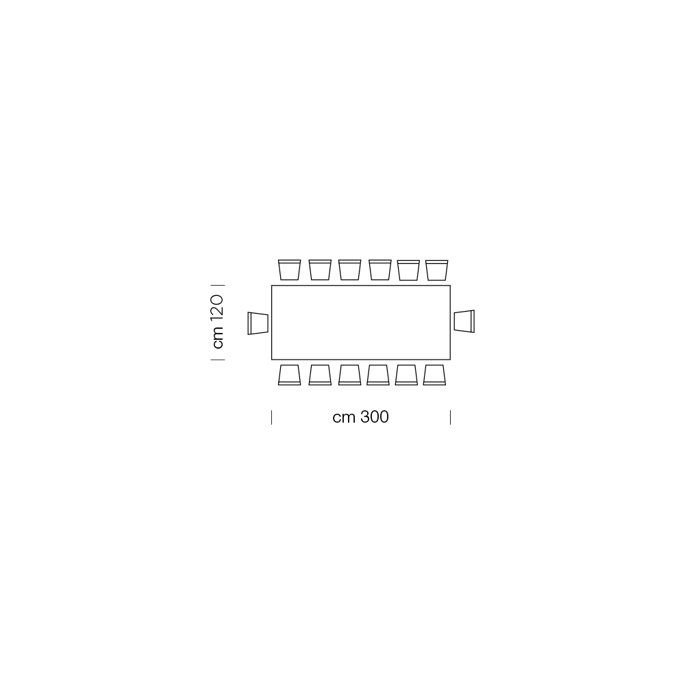 • L 300 x D 120 x H 73.5 cm (14 seats).