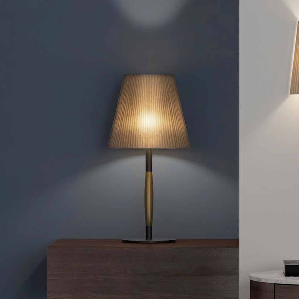 Table lamp in metal and wood with modern organza lampshade Made in Italy.