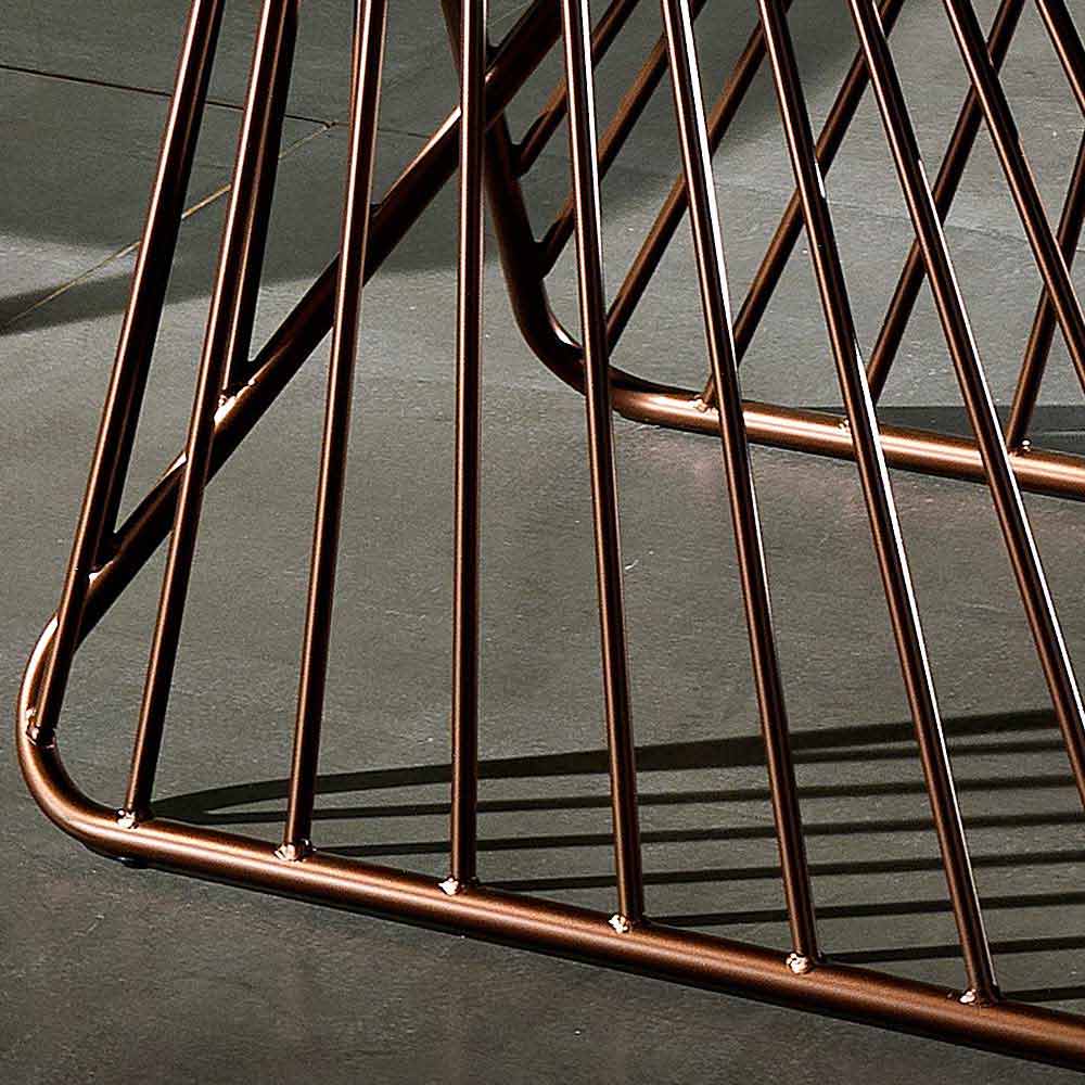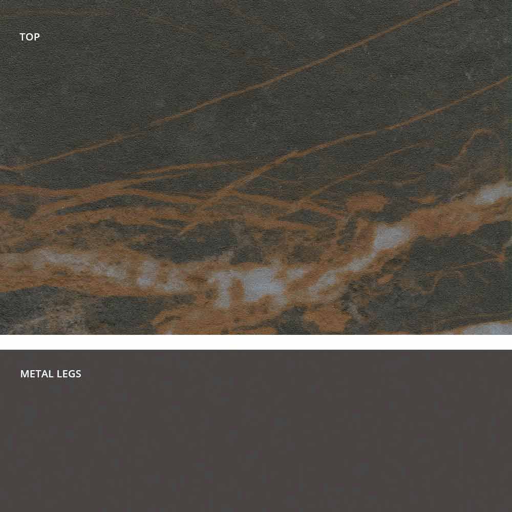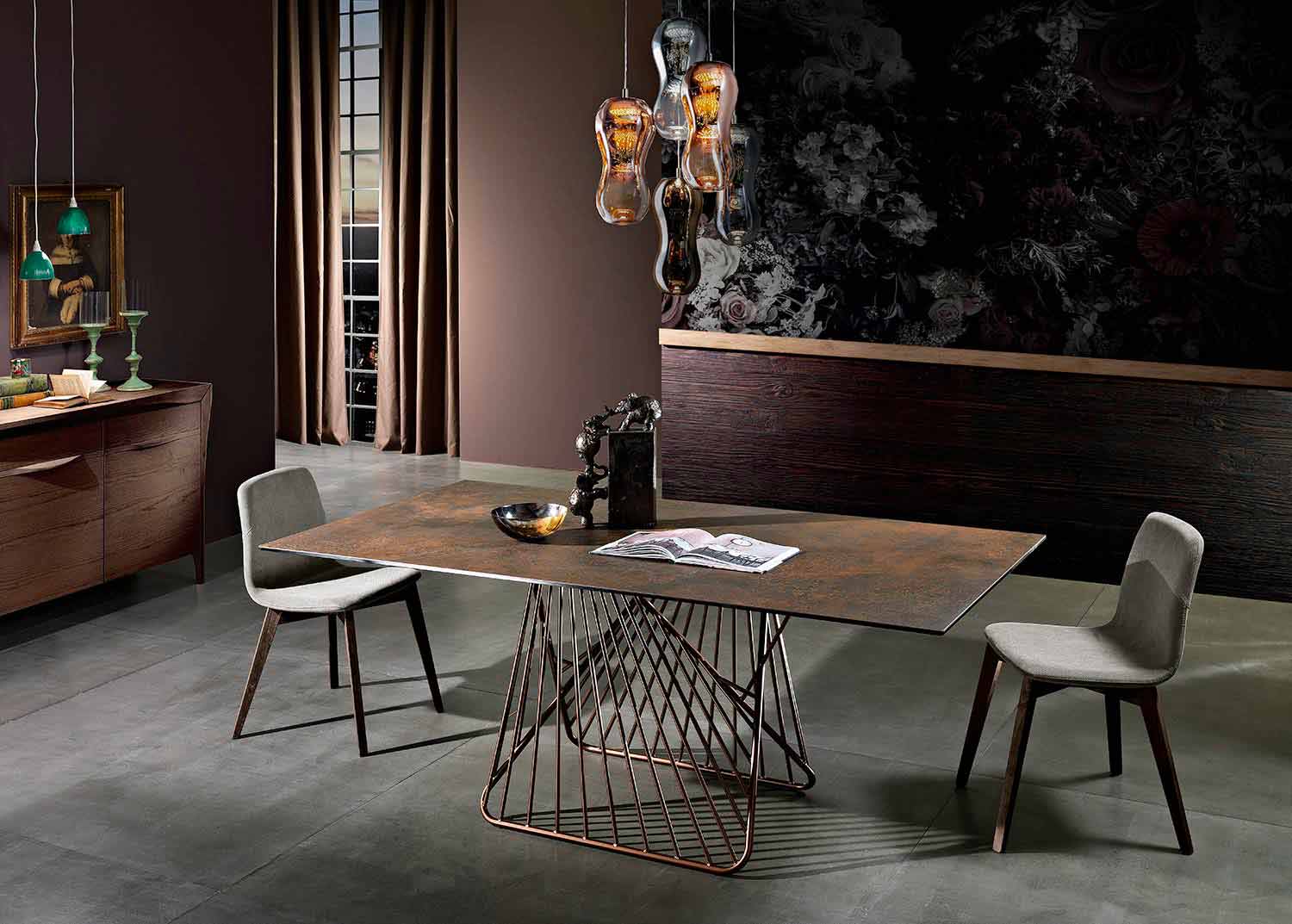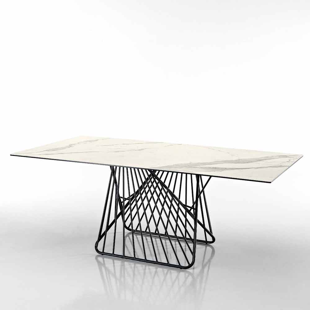 Mitia is a fixed table realized in Italy with a painted metal base and glass-ceramic surface.