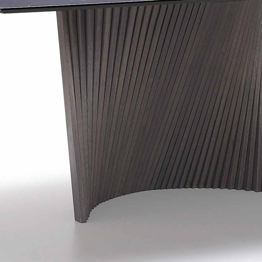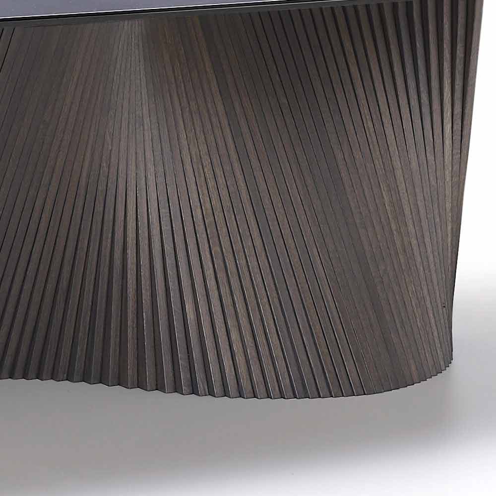 - base made up of over 70 hand-oiled black grey ash strips and semi-barrel-shaped top in stoneware with matt pulpis marble effect;