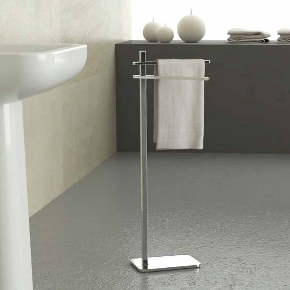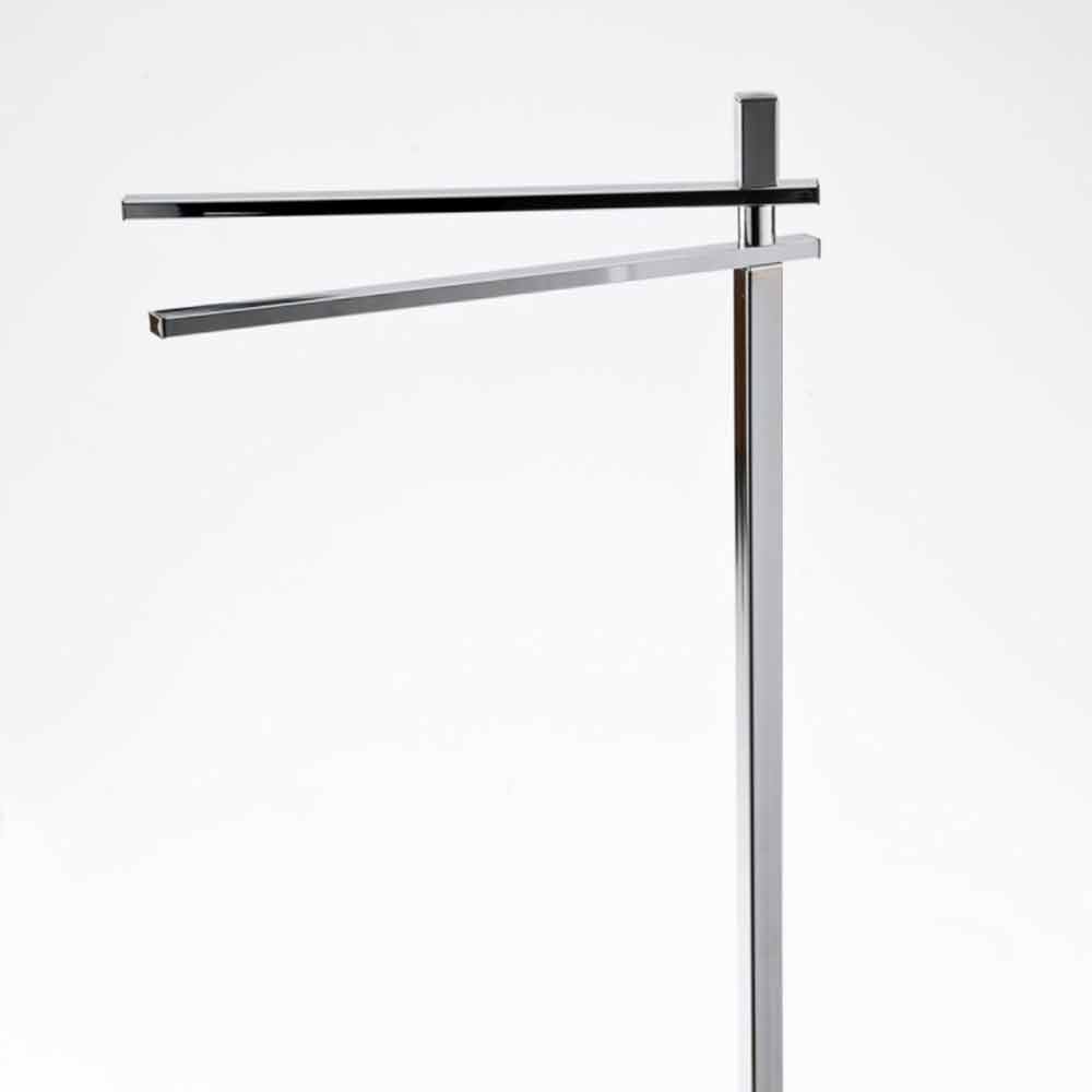 Floor lamp for towels made in Italy with 2-arm chromed iron structure . Characterized by soft and rounded lines , what makes this furnishing accessory with a refined taste unique is its unmistakable simplicity that underlines its elegance and strong personality .