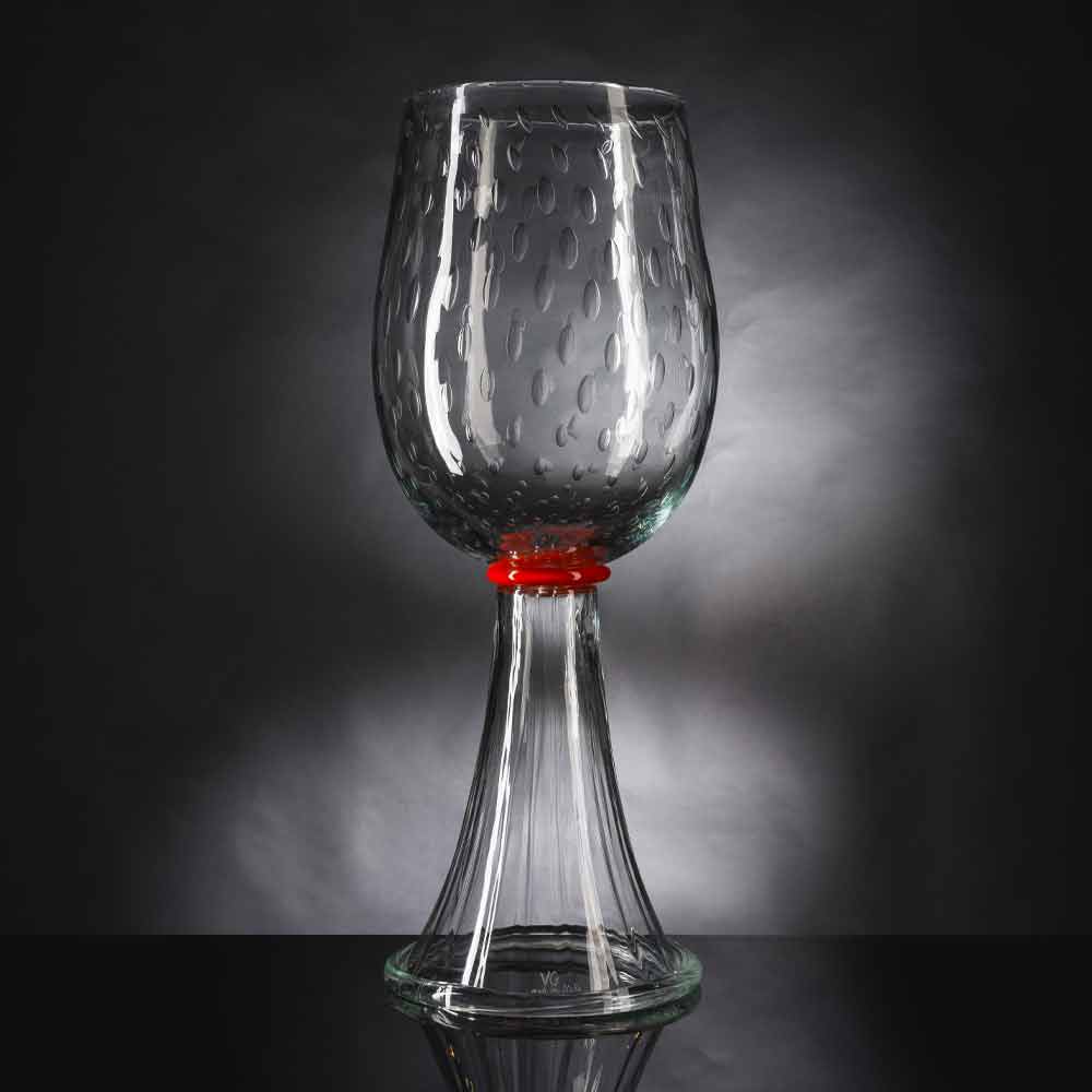 Indoor flower vase made of transparent Murano blown glass with a worked base obtained through a 100% Made in Italy process . A complement characterized by an extremely elegant aesthetic ideal for stylistic situations with classy furnishings in which to create a perfect harmony thanks to objects that complement each other for a unique and sensational atmosphere . The strong point of this vase is the particular texture that covers the entire structure together with the wonderful worked detail positioned at the base, elements that underline its refined style for an exclusive result with a strong visual impact . An ideal design for the most varied environments, from home furnishings to that of hotels, restaurants, contract areas, spas but also as a setting for events and weddings.