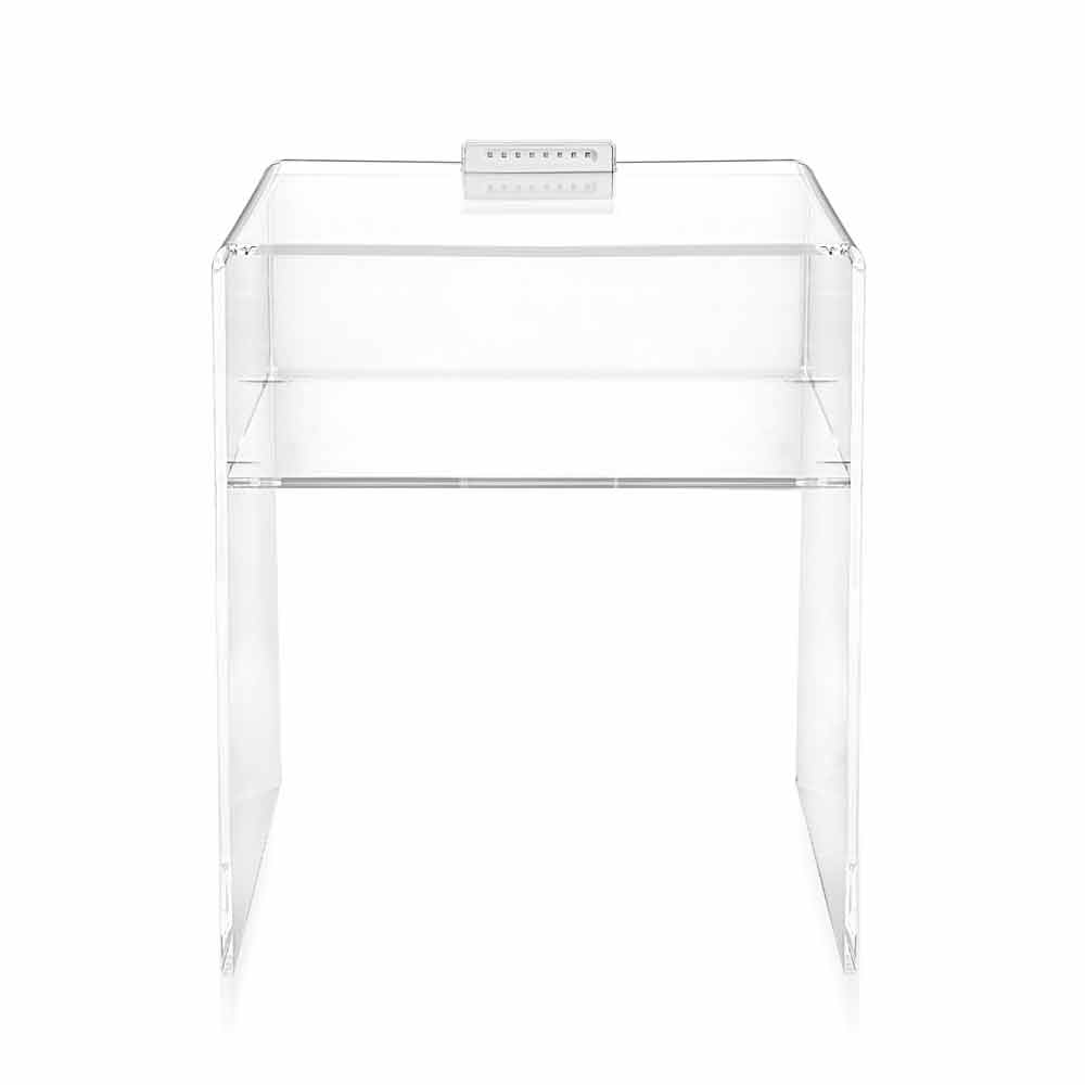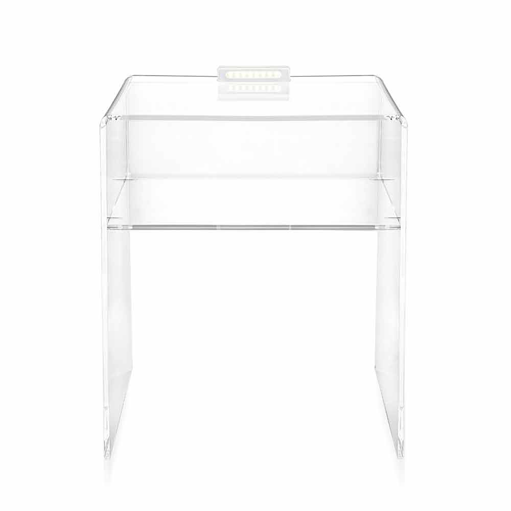 A "touch" of light: just touch it and the Adelia LED bedside table, made of transparent 100% PMMA plexiglass from virgin polymer, lights up even the environnement. Removable LED light is included; lithium battery is included together with the wall cable. The light goes on and goes off just by touching the bright body.