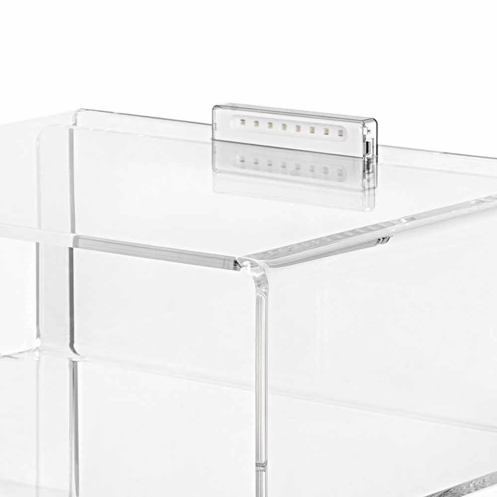 The properties of plexiglass (shockproof, undeformable, unchangeable, thermal insulation) make this item a very versatile piece of furniture. Its luminosity and brightness remain constant and unchanged over time. The PMMA plexiglass from virgin polymers used is non-toxic, hypoallergenic, odourless and anti-bacterial. 100% recyclable, Complies to UNI EN 71-3:200. Designed, developed and manufactured in Italy with Italian materials.