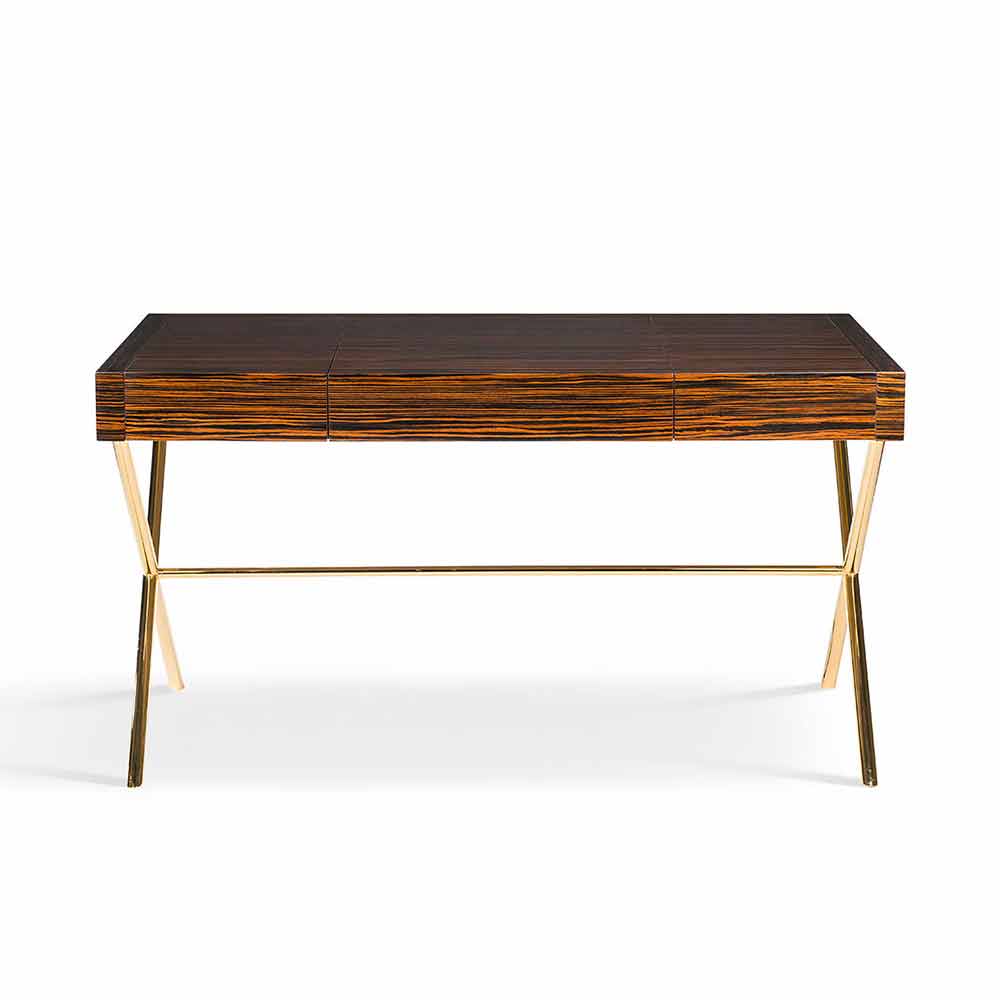 Its structure is made of glossy ebony or white mother-of-pearl, 45° junction. The internal part of the top is matte lacquered and it features a mirror with LED lighting. The frame is in glossy 24k gold galvanized metal.