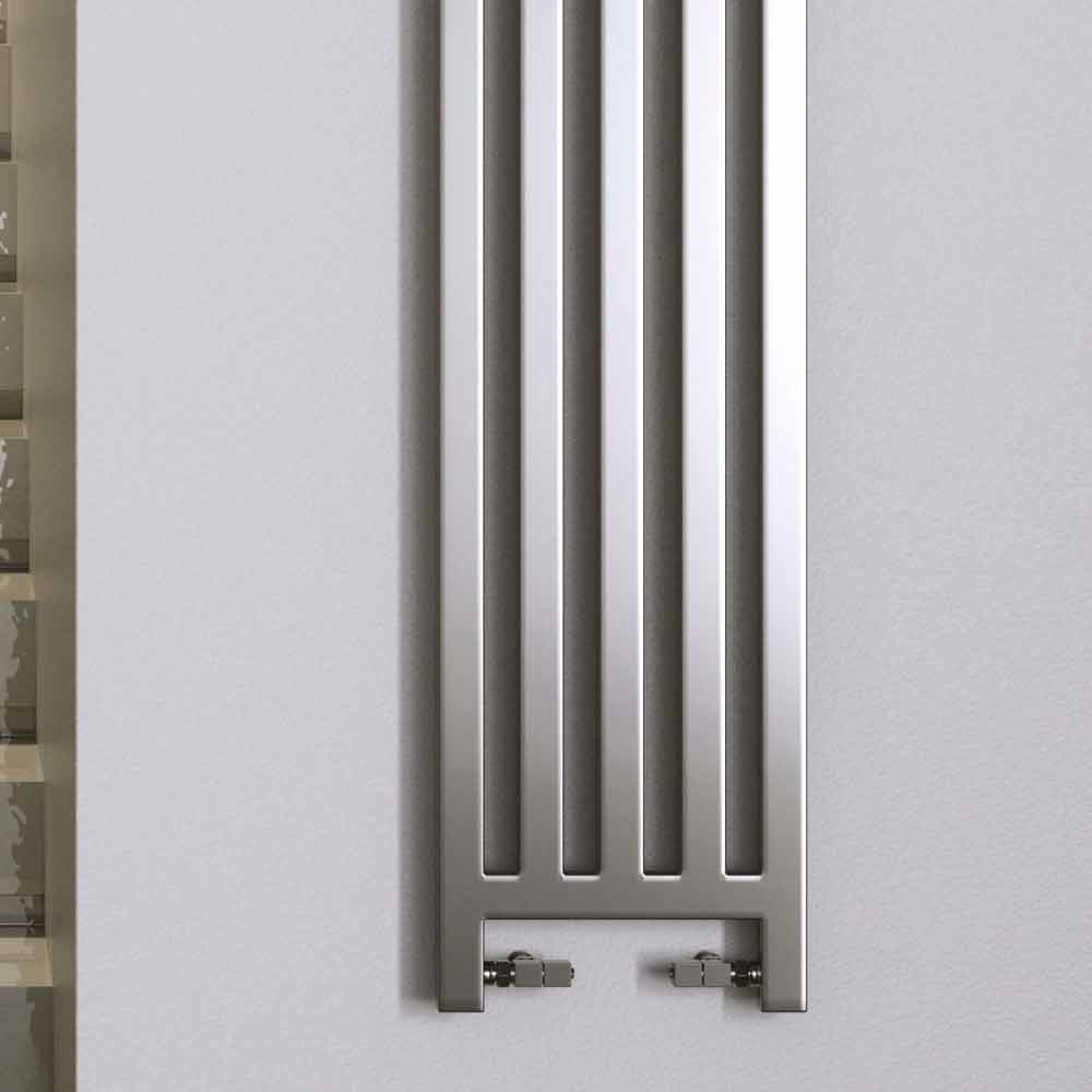 Chrome steel radiator, vertical in the hydraulic version. Mix of materials between heating structure and covering slabs in a perfect balance between aesthetics, functionality, care and refinement of detail. With News Dress you dress the environment you live in.