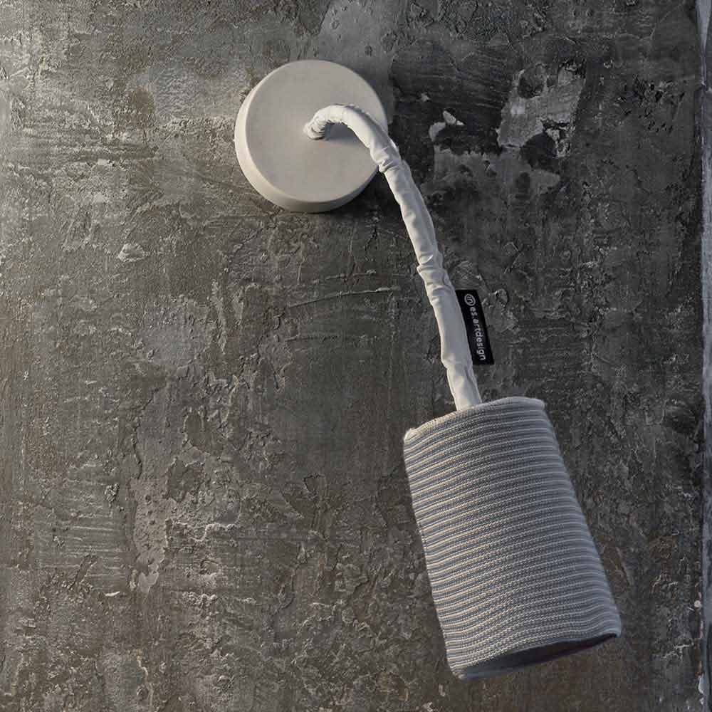 Contemporary and modern wall lamp characterized by a nebulite structure (an innovative material composed of resin and fibre) covered with a striped wool yarn.