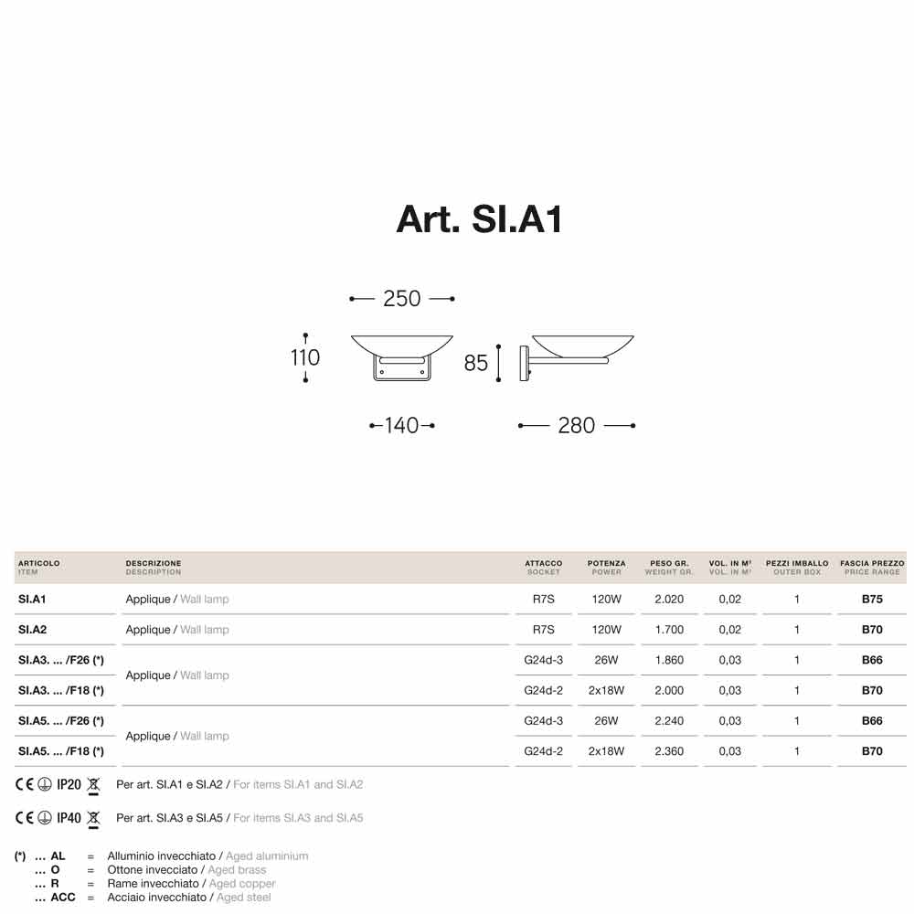 Classic design wall sconce La Traviata by Aldo Bernardi