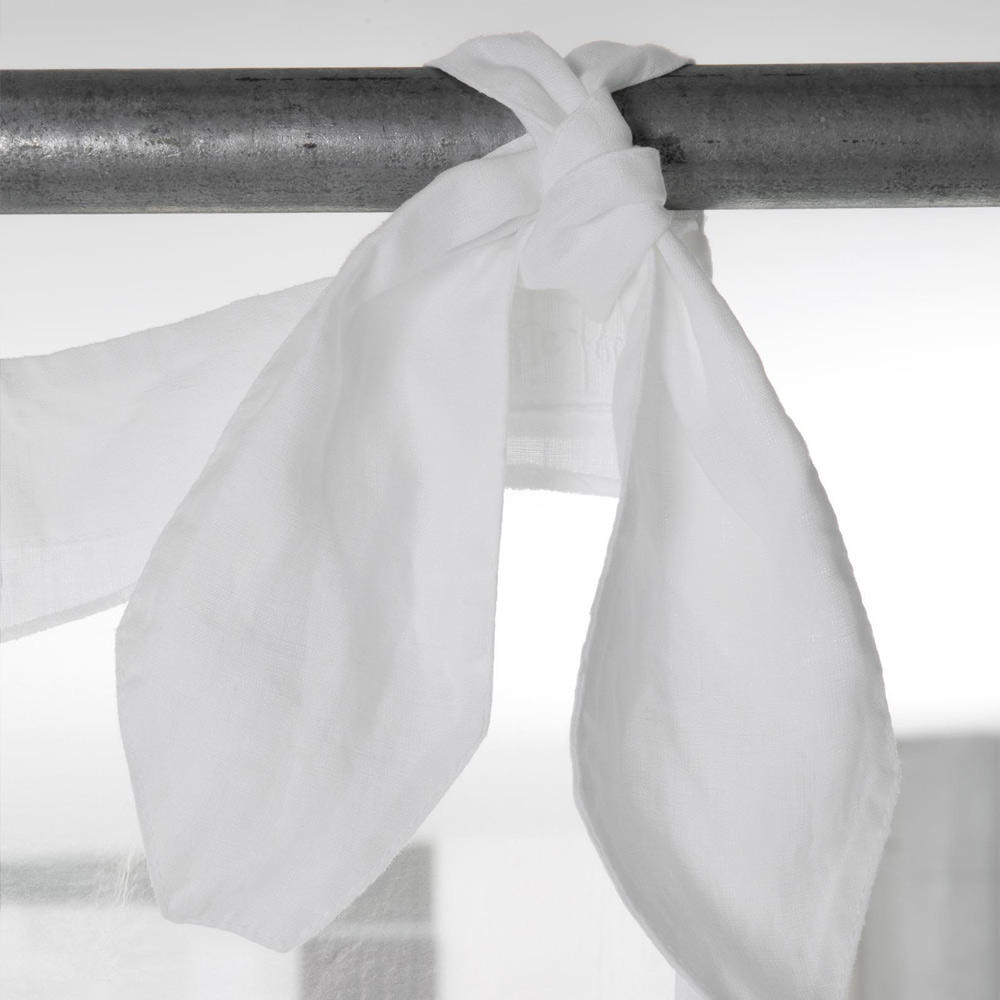 white light linen curtain with organza and wave embroidery, lacing for rod at the top.