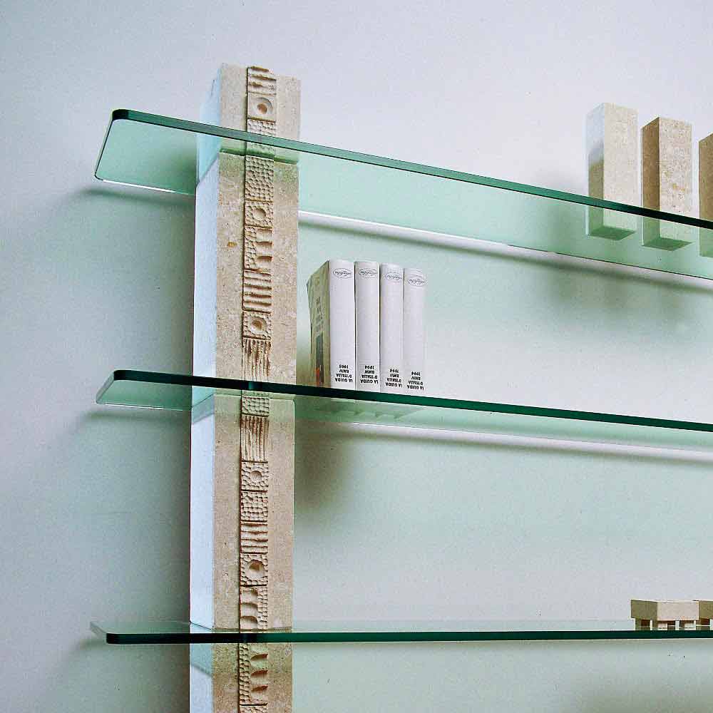 Modular bookcase made of Vicenza natural stone and crystal Galene