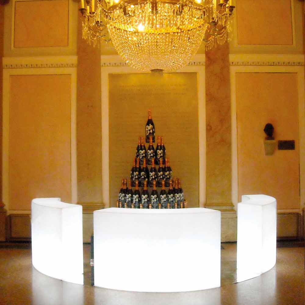 Made of polyethylene and available in the luminous white version and customizable with logos and images.