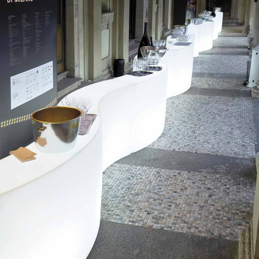 Snack Bar is a modular bar counter with very simple but effective queues that is perfect in both indoor and outdoor settings. Very functional and practical, it can be combined in multiple modules to create long support surfaces in large spaces such as catering services. A chic touch made in Italy, ideal for contemporary and trendy spaces.