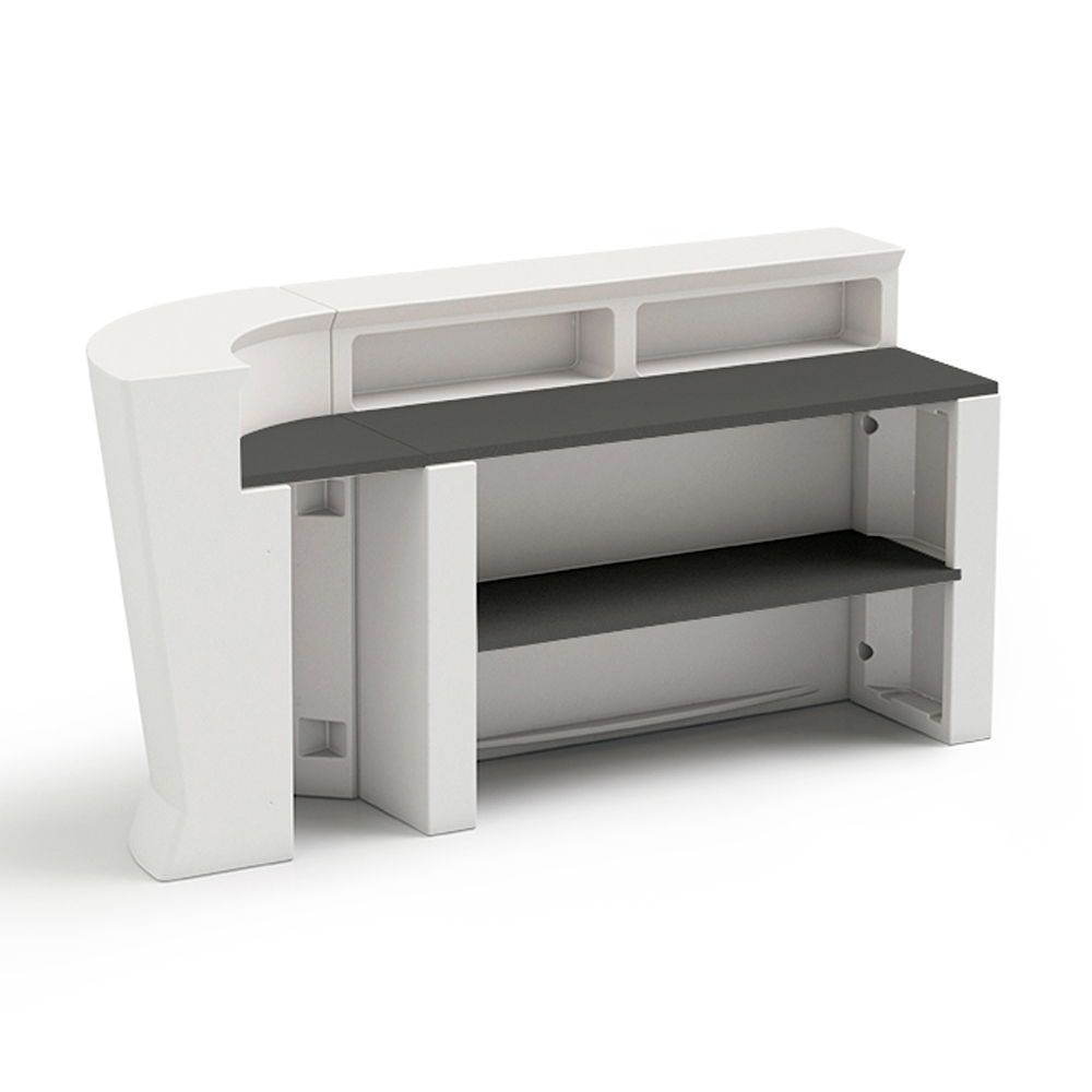 - front counter with RGBW LEDs with anthracite-coloured HPL shelves