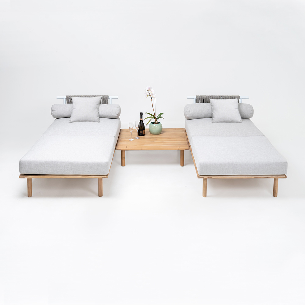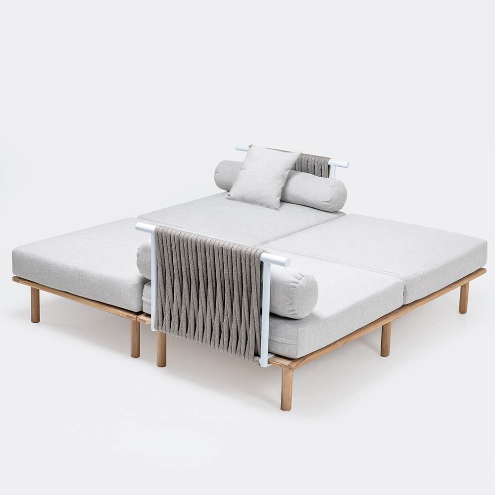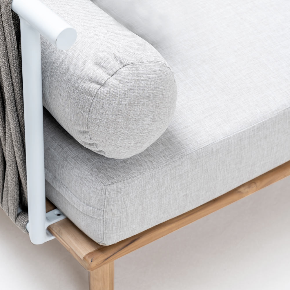 Modular garden sofa in teak, aluminium backrests and weave in Olefin/PP ROPE and cushion