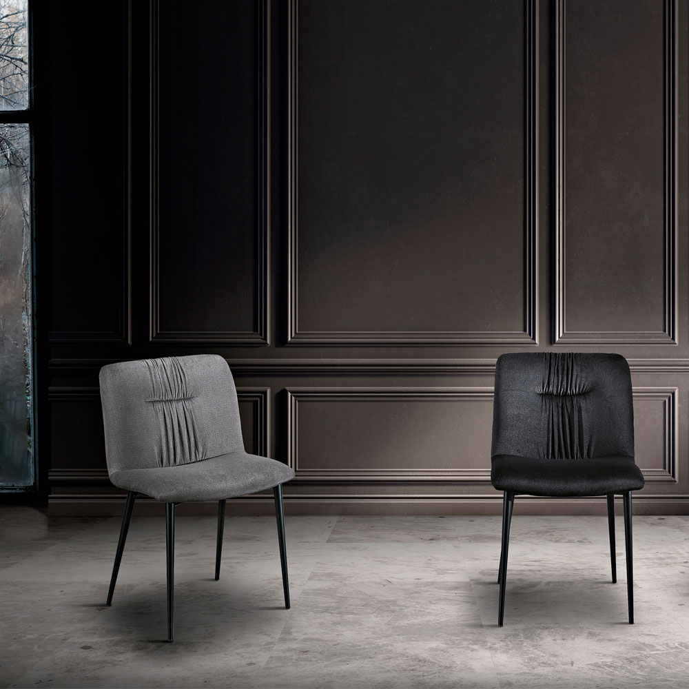Transform your dining room into a more comfortable and elegant space with the modern monocoque chair with a seat covered in easy-to-clean crystal fabric and available in different colour variants: