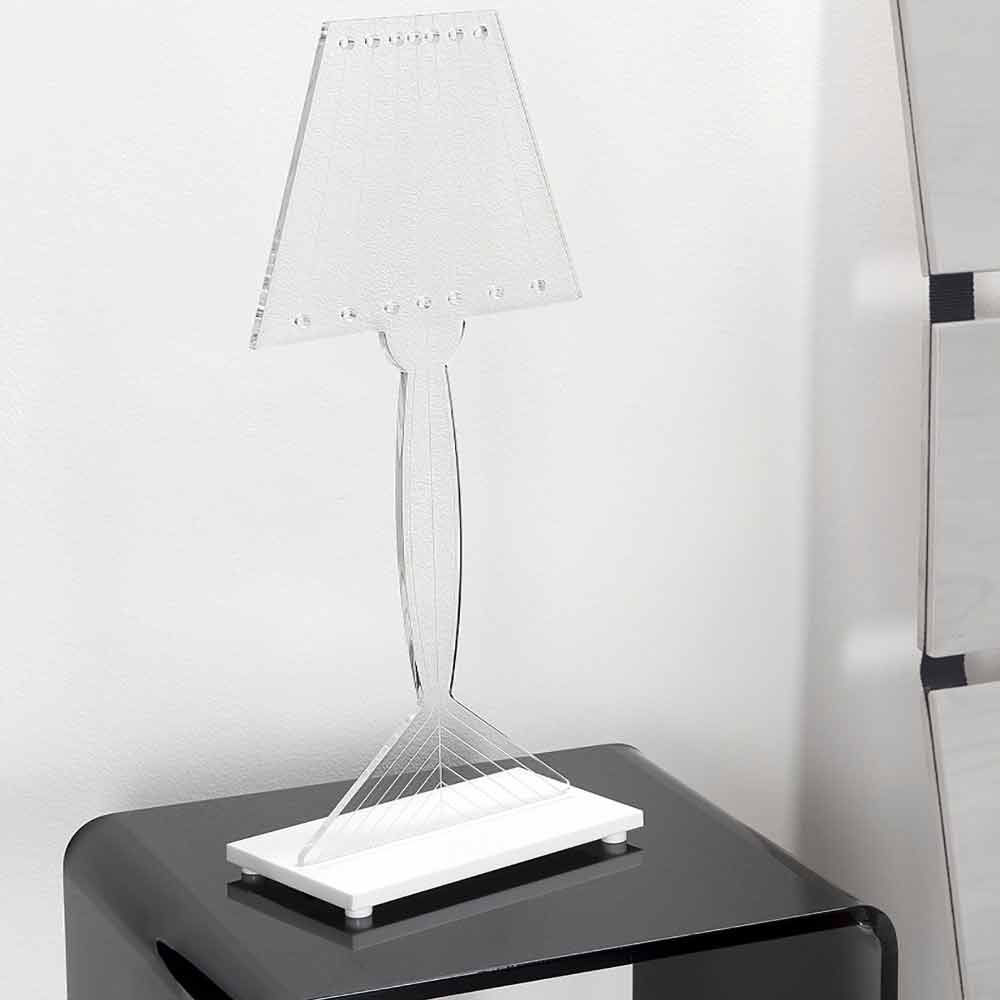Elegant table/bedside moulded LED lamp, made in plexiglass PMMA 100% from virgin polymer.