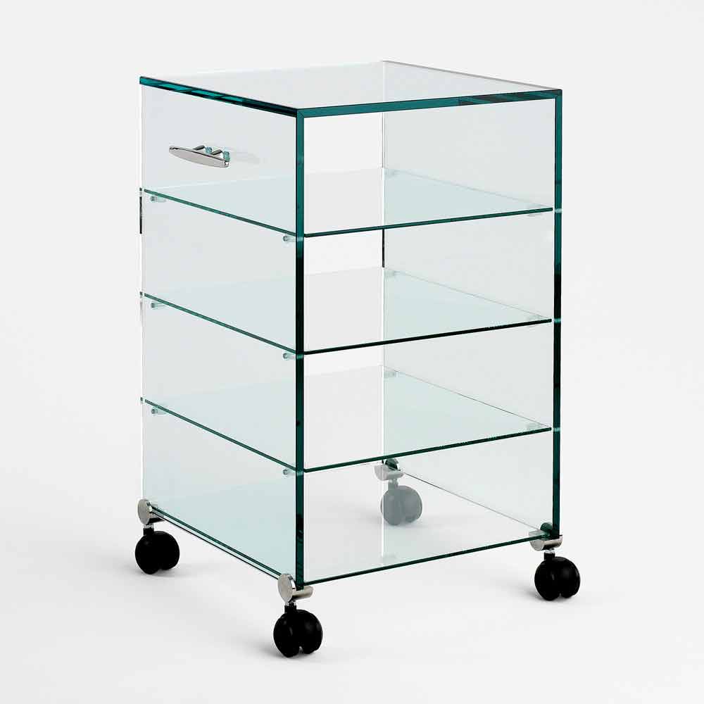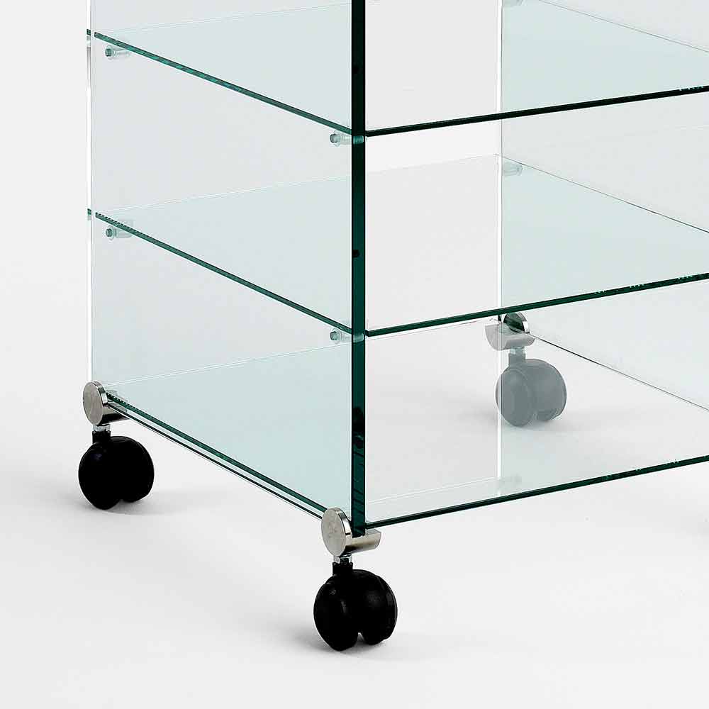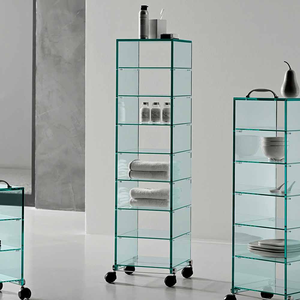 Handcrafted in Italy with high quality materials , it is a freestanding accessory on wheels and available in various sizes with 3, 6, 8 or 10 shelves.