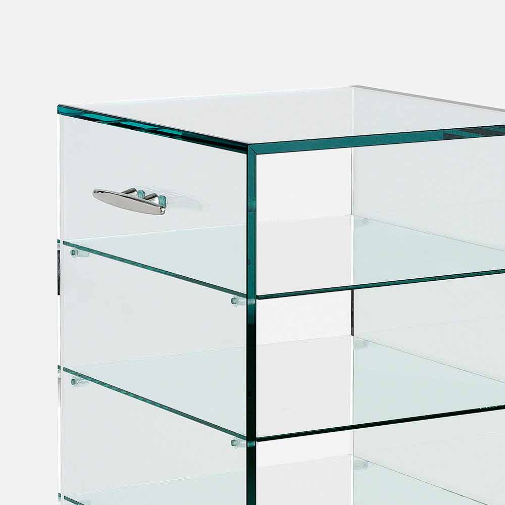 The creation in welded glass , using very thick glass sheets, is the result of a unique process that requires extreme precision and which allows to obtain very resistant structures, especially in the joints, which remain completely transparent thanks to special glues.