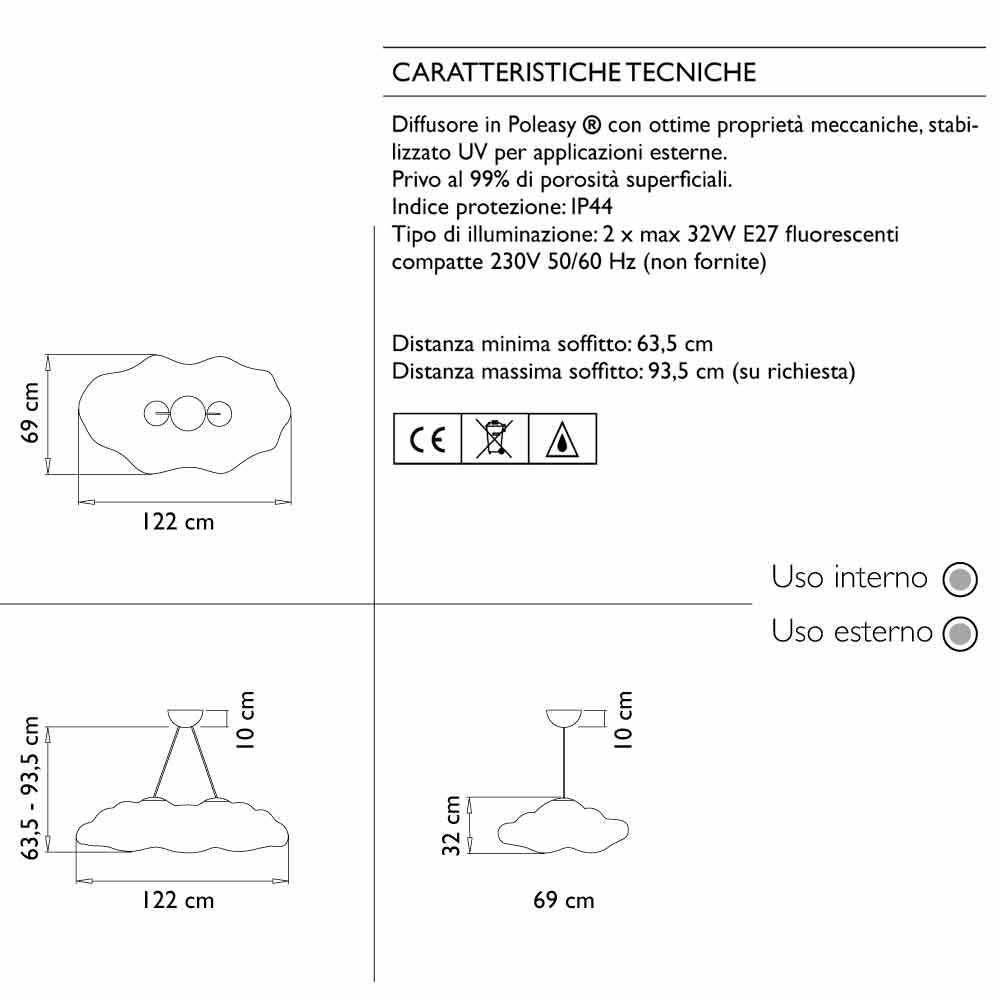 Nèfos suspension lamps give deep emotions to the pleasure of furnishing. Like dreamy clouds with a pleasant diffused brightness, they know how to fit gracefully into any setting, bringing with them a light, very pleasant breath of nature. Made in neutral and blue colours, Nèfos lamps are equipped with IP protection against atmospheric agents, a very rare feature in pendant lamps.