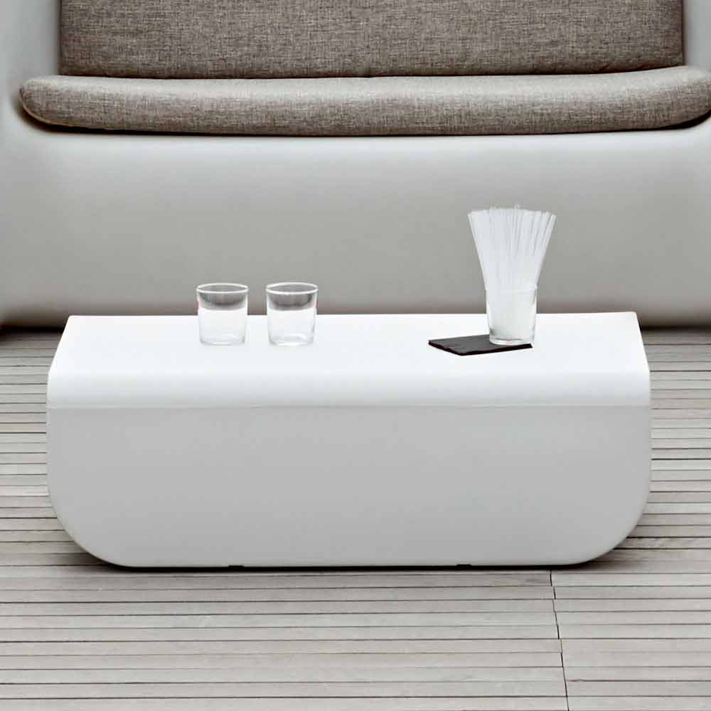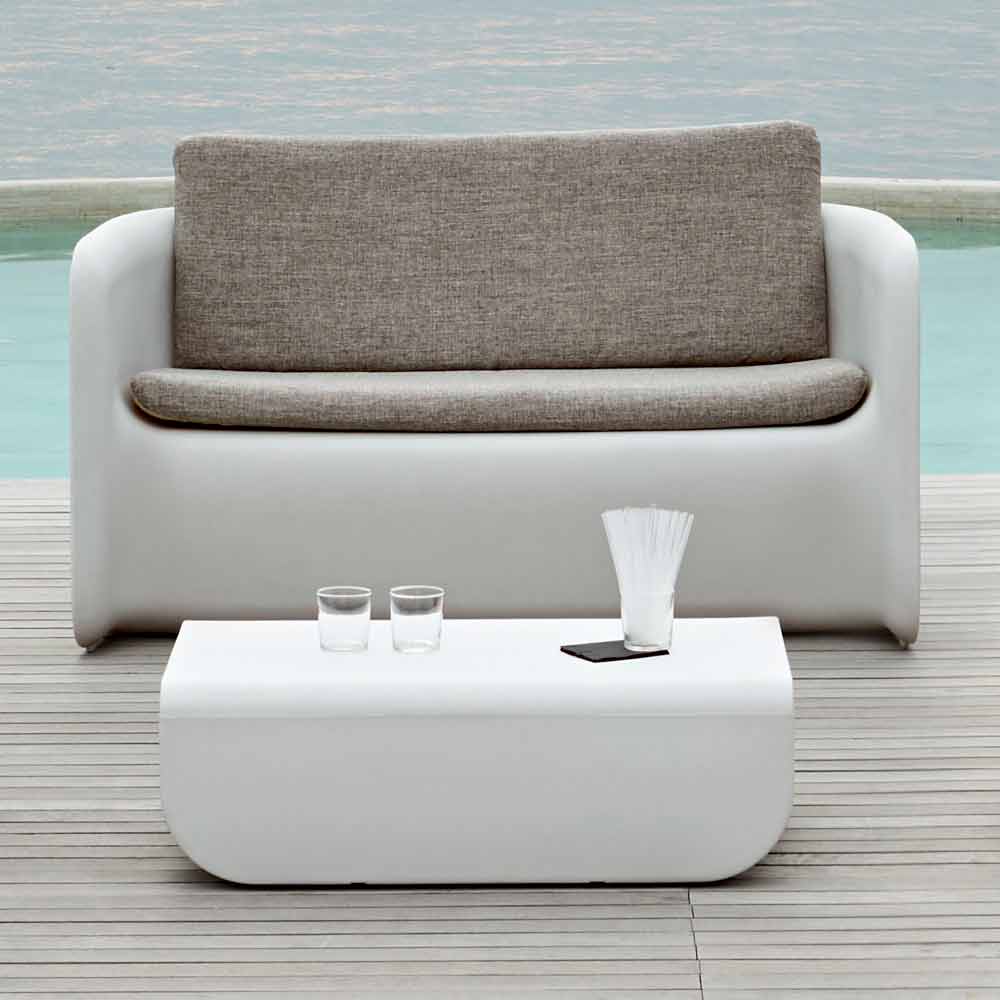Modern design garden lounge, sofa and coffee table in polyeasy, made in Italy.