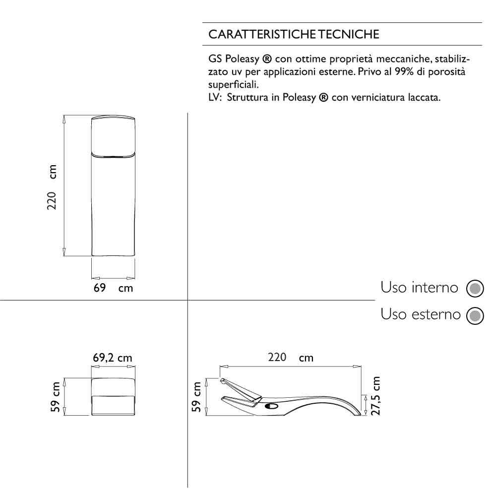 Original and innovative, Zoe allows you to smoothly switch from a lying to a sitting position. Zoe boasts a wide choice of colours and a fantastic versatility of use: it can be placed in open spaces as well as in closed environments, it does not suffer from temperatures from + 60 ° to -20 ° and all its metal devices are entirely in aluminium or 316 steel to resist to atmospheric agents.
