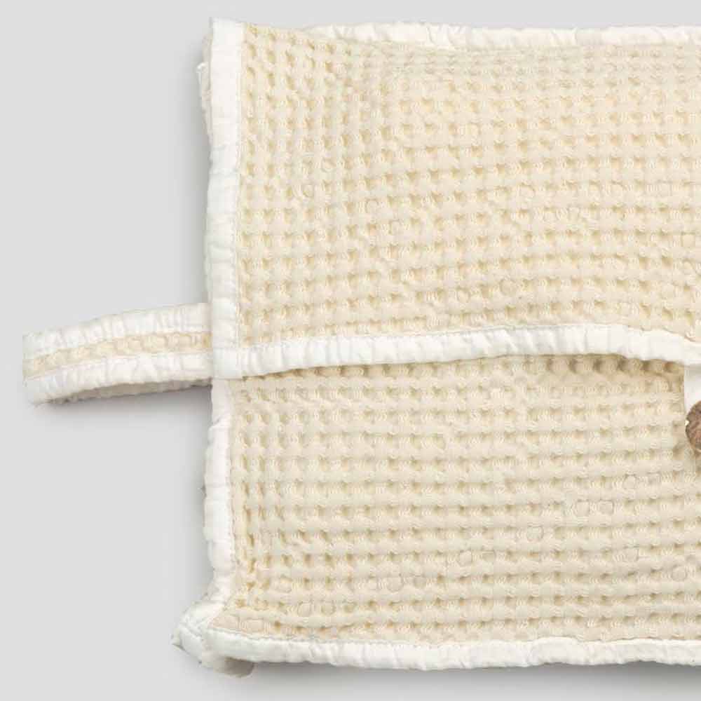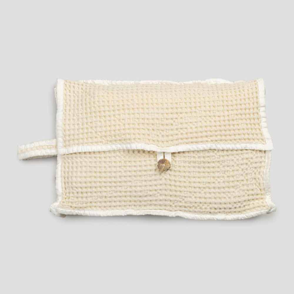 Elegant pochette in honeycomb cotton with mother of pearl button closure, made in Italy.