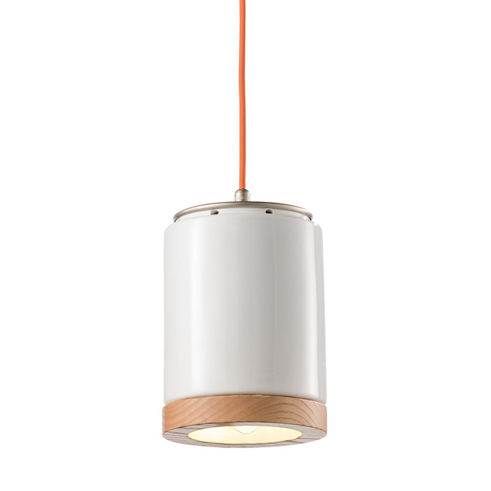 Nordic design suspended lamp in wood and ceramic made in Italy by Ferroluce.