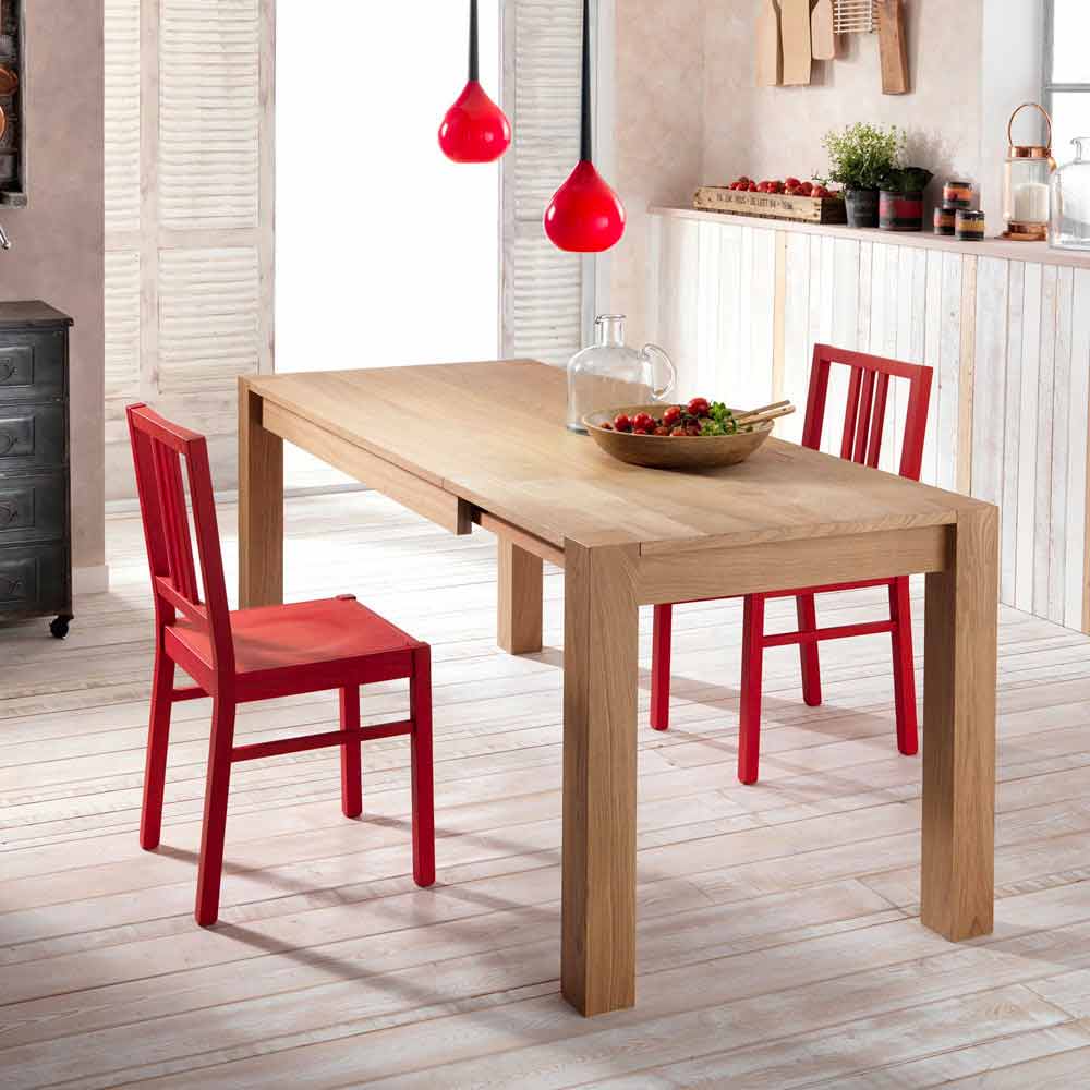 Extendable Indoor Table in Fir with Shaped Corners and Inlays Made in Italy - Faramir