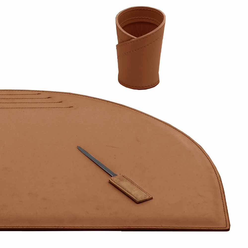 Design desk accessories in regenerated leather, set consisting of 4 pieces, Made in Italy Medea