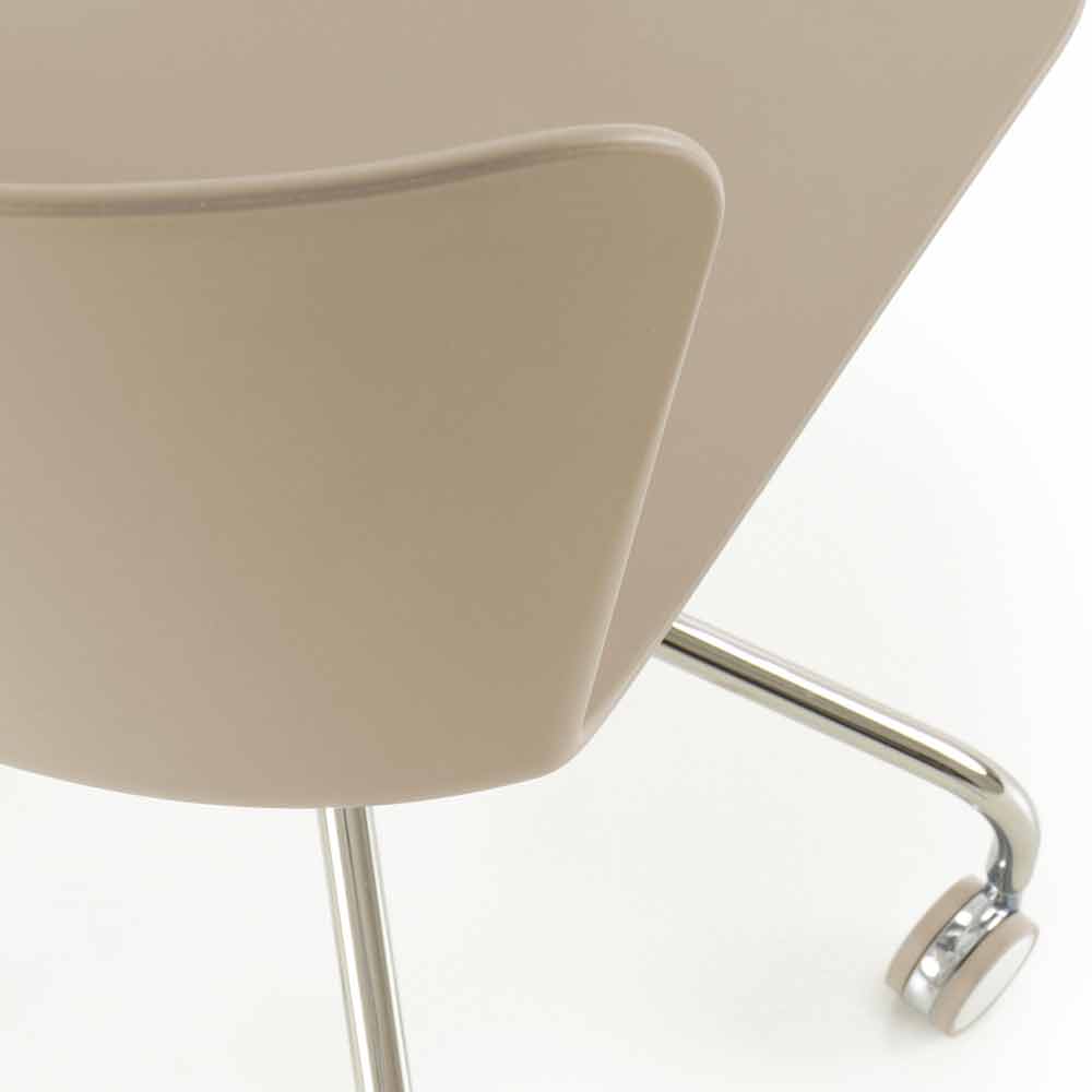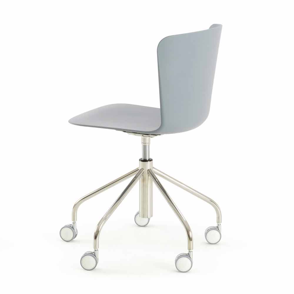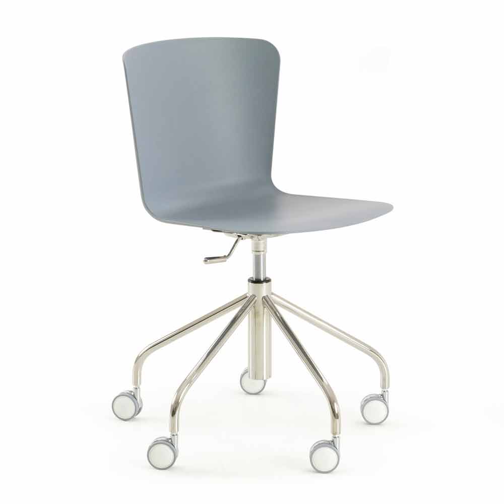 Modern office chair made in Italy with polyethylene shell and 5-spoke chromed metal structure, swivel and adjustable in height with wheels.