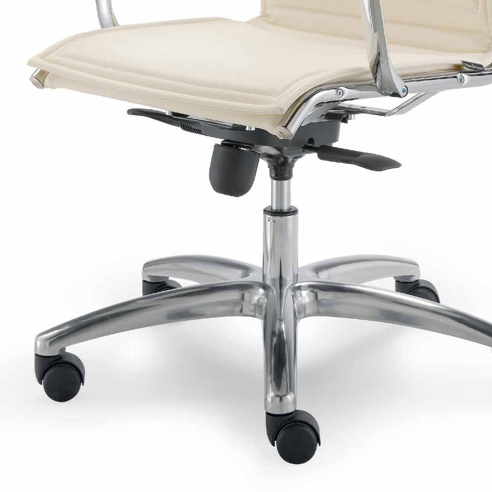 Complete with chromed aluminium armrests and a 5-star base in polished aluminium, complete with Ø 50 mm braked wheels.