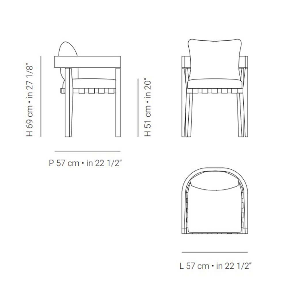 Outdoor armchair in teak wood with seat and back in padded cushion Made in Italy