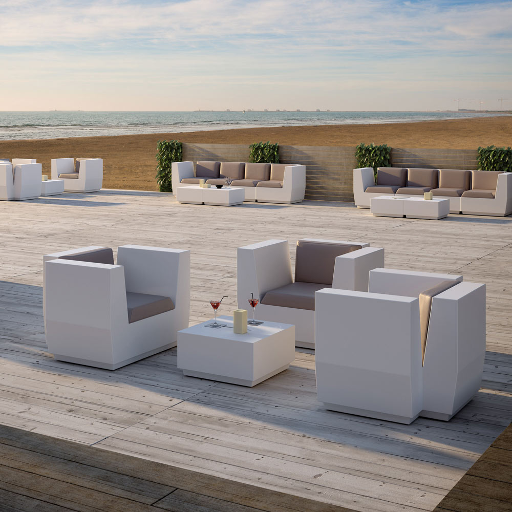 Polyethylene garden armchair with armrests characterized by a structure that offers optimal comfort. An original furnishing solution with a strong contemporary personality designed to give an exclusive touch to any outdoor space while offering a comfortable and welcoming seat thanks to the practical cushion that makes it ideal for spending your moments in the open air dedicated to relaxation. The wonderful colours proposed for the pillow also create a strong contrast capable of enriching the product through a touch of innovative style.